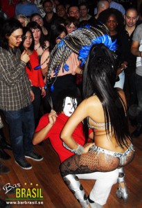 Mas em Estocolmo, o povo só vai festejar mesmo quando as medidas subirem de verdade lá pros 15 ou 18 graus, e com muita sorte, que fique lá por cima dos 20 durante um bom tempo. Mas como esse povo do Bar Brasil tem o sangue quente e swing no corpo, então a gente pega carona na folia lá dos trópicos, e botamos logo a coisa pra ferver por aqui. Em plena sexta-feira de Carnaval brasileiro, também aquecemos os tamborins num bailinho pra lá de animado lá no Lois em Östermalm, que tem sido a casa oficial dos últimos eventos do Bar Brasil. A clientela habitual e os carnavalescos órfãos destas bandas, compareceram em peso, e a folia foi formada sem dar trela pra friaca lá de fora, o salão pegou fogo.